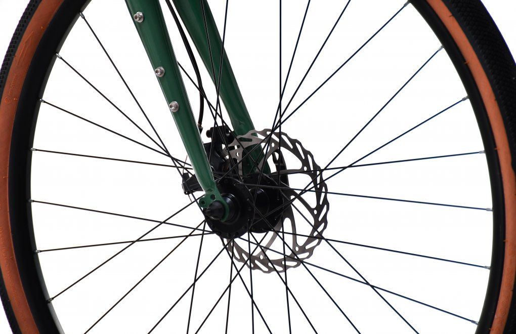 Bicykel je vybavený mechanickými kotúčovými brzdami, spoľahlivým pohonom